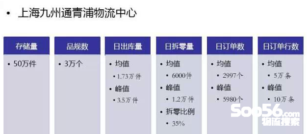 九州通医药上海青浦物流中心总体情况:仓库使用面积27000㎡;日均出库订单行25000,高峰值56000;日均出库件数8000-15000件;仓库作业人数160人以上,其中拆零拣货及复核80人。