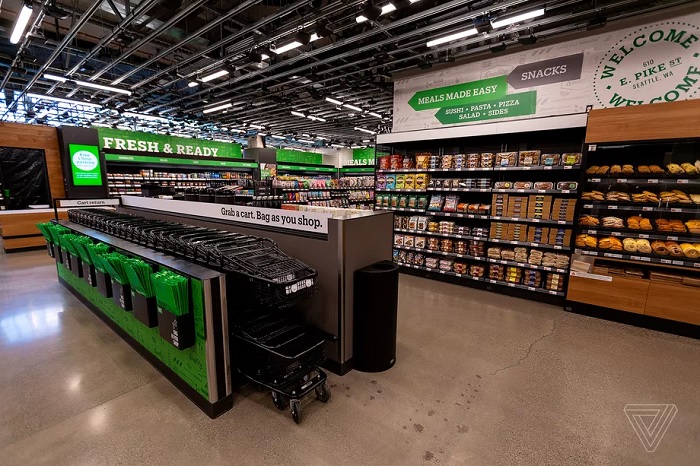 亚马逊称,新店结合了 Publix / 沃尔玛之类的杂货连锁店的丰富库存和高性价比,以及 Go 模式下的快速购物便利性。